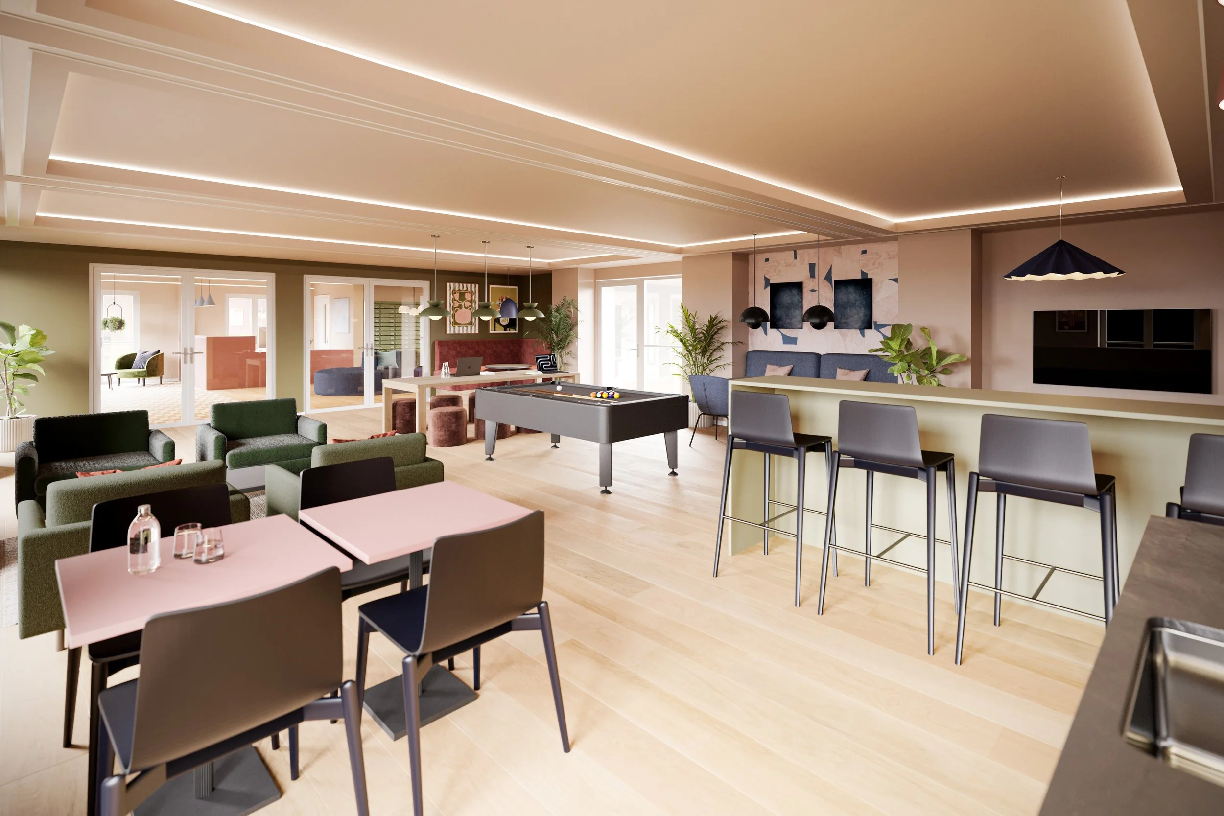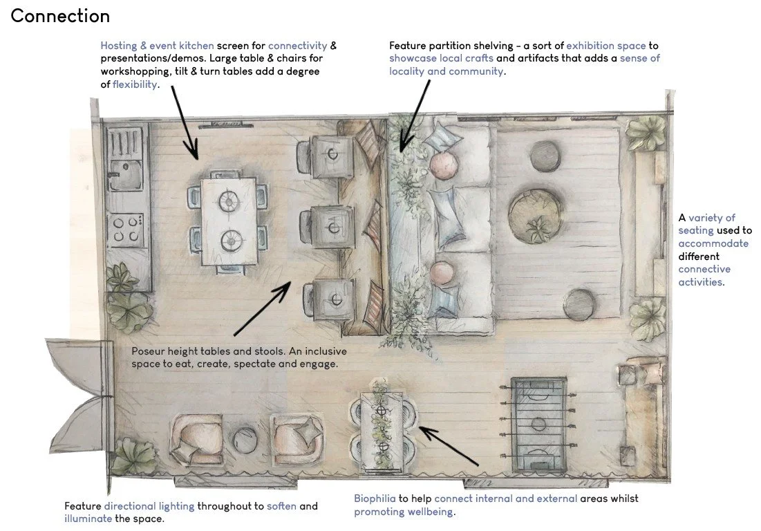 Design underpins this, of course, and feeds into the collective energy of a scheme. Good design can encourage connection, generosity, and ease - all things we want to instil. It’s worth noting these spaces are shared, and people connect and socialise in different ways, so they need to be low pressure and not intimidating. These types of environments make people feel comfortable and when people feel comfortable, the energy in a space naturally lifts.